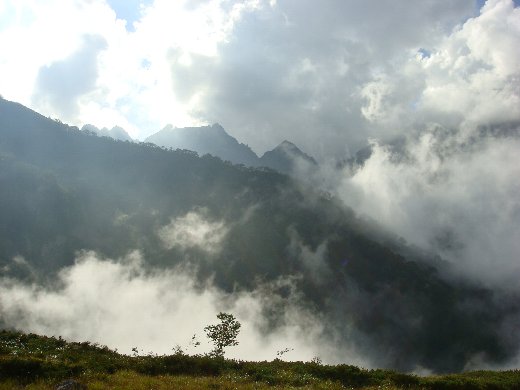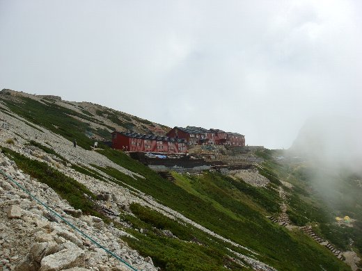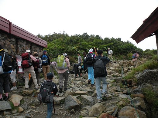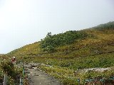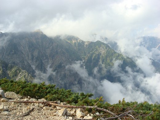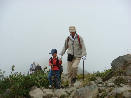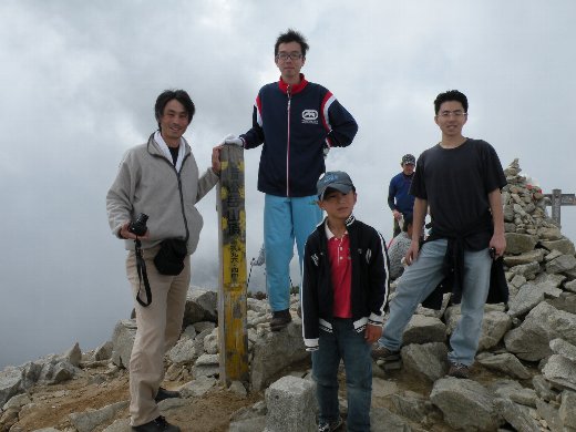 2000年の富士山以来の本格的な登山。登山装備はほとんど持っていないため、ジーパンにスニーカーで登った。富士山登山時に富士山須走口で購入した木の杖を使用。手袋は軍手で、ザックはディスカウントショップで購入した1,000円程度の簡易リュックを使用。 駐車場から八方池山荘まではゴンドラとリフトを使用。登りはガスっていてあまり眺望がよくない。下りは徐々に晴れ間が出てきたが、期待していた八方池から見る遠方景色は雲が多くいまいちだった。 |