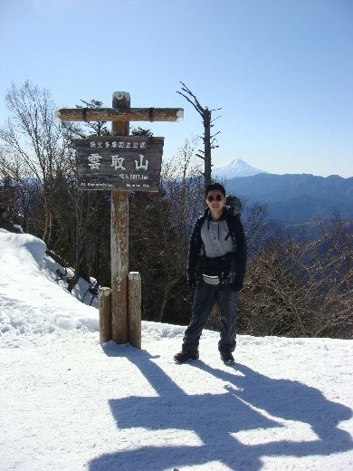 | (10:57) 富士山方面をバックに記念撮影。 | (11:23) 富士山アップその4 | (11:25) 雲取山頂にて。 | (11:25) 雲取山頂にて。ポーズその1。 |