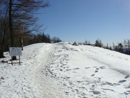 | (9:06) 水場前。七ッ石山への分岐。 | (9:10) 分岐(七ッ石小屋上) | (9:15) 分岐。この辺から積雪あり。 | (9:21) 七ッ石神社 |
