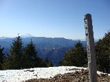 | (11:43) 雲取山頂から見た東京方面。 | (11:44) 南アルプス方面 | (11:45) 北方面は樹木があり展望はよくない。 | (11:46) 富士山アップその5。この直後下山開始。 |