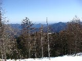 | (9:26) 七ッ石山から雲取山。 | (9:30) 踏み固められたところはツルツルで少々滑ります。脇を歩けばサクサクと歩きやすい。 | (9:32) 南アルプスが良く見えました。 | (9:37) 七ッ石山からの下り道。 |