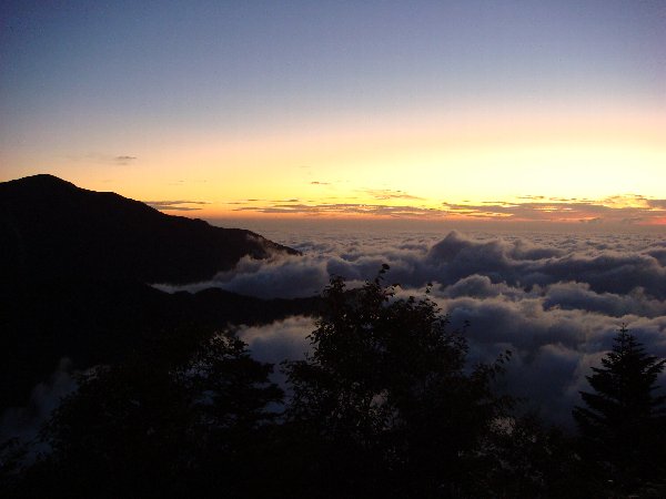 | (17:51) 夕食の時間 | (18:09) 丸山にて、夕陽 | (18:09) 雲海に沈む夕日 | (18:09) 大日岳方面 |