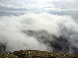 | (10:57) | (11:00) 棚沢ノ頭にて。蛭ヶ岳まで1.6km、丹沢山まで1.7km | (11:08) 蛭ヶ岳方面は晴れのようだ。 | (11:08) 完全にガスは抜けました。 |