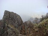 | (9:20) 宮ヶ瀬湖方面 | (9:24) 鬼ヶ岩にて | (9:24) 鬼ヶ岩にて。ガスってきました。 | (9:24) 鬼ヶ岩付近にて。丹沢山まで2.5km、蛭ヶ岳まで0.9km |