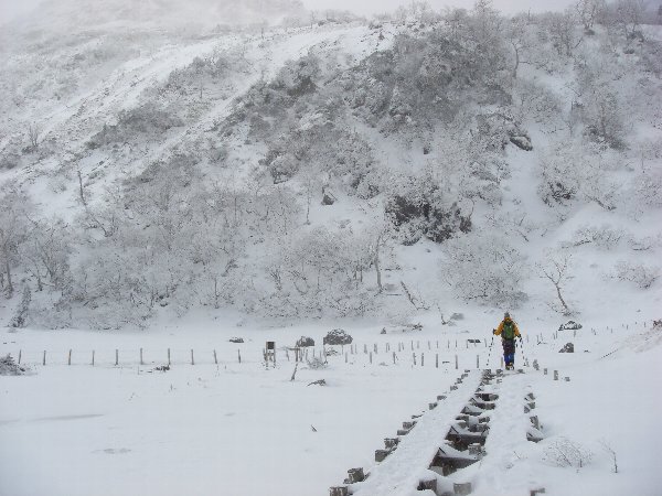 天気よさそうだったので、日光方面へ。午前中は曇りで午後からは回復するだろうと期待していたが、午後も天気が回復せず山頂では降雪がありました。 五色沼非難小屋から山頂までの上りは急坂のうえラッセルできつかった。山頂付近ではガスっていて展望なし。ガスっていると方向が良く分からないので要注意。GPSで位置関係を確認して通過しました。山頂から弥陀ヶ池への(冬季の)下りは唯一の難所で岩場ではピッケルを使用。慎重に進めば問題ないかと思います。 寒そうだったのでたくさん着こんで防寒対策はばっちりだったのですが、おかげで体はポカポカしていたせいか顔耳のケアをすっかり忘れてしまい、気付いたら耳が凍りついていました。すぐにホッカイロを当てたりして解凍したのですが軽い凍傷になってしまいました。寒い痛いを通り越して間隔がマヒ(瞬間冷凍された感じ)していたので極寒での行動では注意が必要。 下山してしばらく市街地方面へ進むと上空は快晴。山だけガスっていたようです。山の天気判断は難しい。 日本百名山45座目ゲット。 |