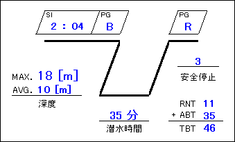 | 前回までの合計実際潜水時間 2:40 | + | 今回の実際潜水時間 0:35 | = | 合計実際潜水時間 3:15 |